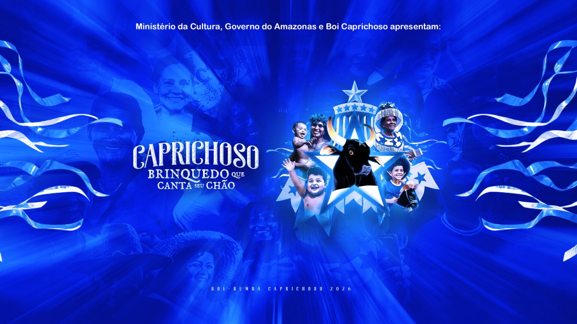 O Boi Caprichoso foi um sonho plantado na intimidade de fé de uma família que largou sua casa na busca por dias melhores. Migrantes, irmãos, sonhadores, que, embevecidos pelo dom da gratidão, construíram seu brinquedo de pano para pagar a promessa a um santo menino. Agora, o sonho dos Cid já não é guardado na intimidade afetuosa da bagagem da esperança; ele tornou-se coletivo e é comungado por uma comunidade amazônica inteira. A poeira do chão, que se misturava às fagulhas da fogueira e espiralava o perfume da lenha queimada, recendeu outros sentidos e, carregada nos braços do vento, levou a brincadeira de boi ao colo das tantas famílias que conduziram esse terno brinquedo para além das fronteiras da ilha. O brinquedo, feito de amor e pano, tornou-se talismã popular que atrai multidões por sua força e arte daqueles que brincam e amam. É arquétipo de sonhos e lutas, é amuleto de revolução de quem fez do brincar a guerra contra tudo aquilo que freia a evolução de um povo; é uma entidade viva onde habitam os desejos, anseios e aspirações de uma gente que resiste contra tudo para sobreviver em uma Amazônia esquecida e disputada por aqueles que tentam destruí-la por poder. É no desejo de dias melhores que aquela velha armação de cipó e sarrapilha, de olhos tirados dos fundos de garrafas de vidro e coberta pelo couro preto de veludo, que Parintins e seu criativo povo redefiniu seus próprios sentidos, conectando mulheres, homens, crianças e idosos das muitas gerações, bichos, árvores e rios, para tornar-se afago, amparo, remédio, cura, reavivamento, sublimação, ponte, caminho, esperança e tantos outros adjetivos que reverenciam a diversidade e polissemia num único ser, que pertence ao povo e canta seu chão sagrado ao mundo todo. Afinal, o brinquedo Caprichoso também é canto, arte que ecoa da boca do povo na inteligência, na inventividade, numa alquimia sentimental que faz ecoar as barreiras e ultrapassar a razão, numa catarse apaixonada onde o corpo se entrega para recender a chama viva da paixão. É arte que manipula os sentidos, dando vida ao sonho num canto liberto, gerador de emoção, que faz os olhos transbordarem com o brilho das estrelas em noite junina. É o chão, organismo vivo, nosso corpo e espírito, que, debaixo de nossos descalços pés, guarda os segredos antigos do mundo e do futuro, nossa terra-floresta, território vivo que, na contramão do tempo, é diariamente atacado pelo falho sistema econômico em que vivemos. Chão da vida, berço sagrado e colo materno de nossa existência. Esse é o Caprichoso 2026: um brinquedo tecido de sonhos, arma contra o medo, instrumento revolucionário do amor e da arte.